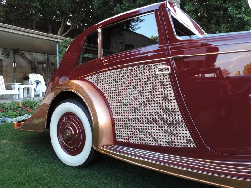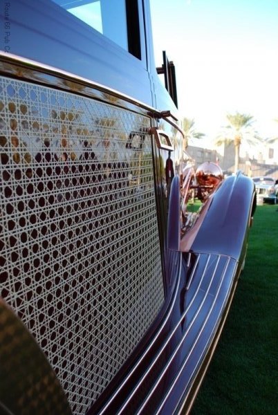 At first glance one might think this was gaudy, until you stop and appreciate all the workmanship on this lovely lady. The Rolls Royce was originally a 37 and in 1947 rebodied by the then owner John Gaul. Afterwards it has been affectionately known as Gaul’s Copper Kettle and for good reason!. That is copper over steel body work and includes rattan lacework and copper burnishing. Absolutely breathtaking and countless hours were utilized to make this one off classic.Arizona Concours D'Elegance Award Winner 37 RollsArizona Concours D'Elegance Award Winners Copper