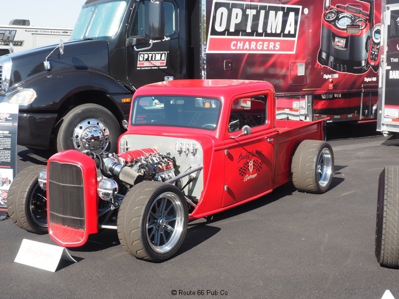But hats off to the owners, Walter and Thenia Sigsby. This T-Bucket had some great workmanship and the paint and shiny pieces glowed under the lights in Pomona, CA. The Jaguar rearend was easy to see in this design and the Dan Fink grill was top notch. Due to the stanchions, I couldn’t see much of the Ron Mangus interior but what we could see was awesome. Turns out the gas tank was done by Jim Babbs who had also worked on the original Leg Show T in 1970.