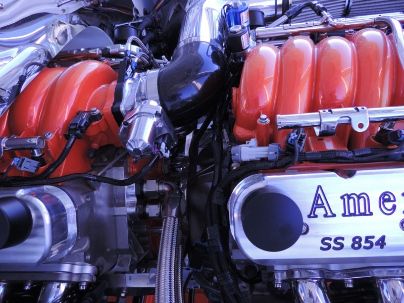 That is not a mirror behind the engine, that’s two LSX engines mated together. That friends, is one fine engineering feat. We’ve seen it done before, but this setup is over the top. Done well and nicely planned out.