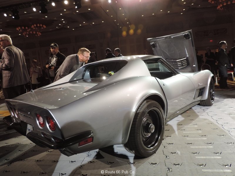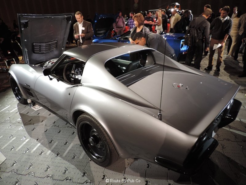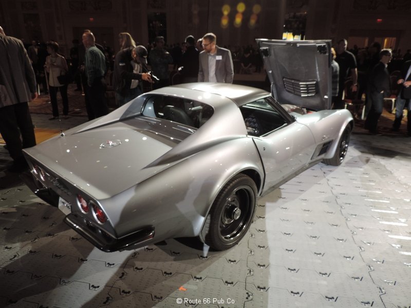 The 71 Corvette rides on 18″ rally wheels and is slowed down by C6 Z06 brakes; six pistons up front and four pistons in the rear. The interior included black leather and gray suede bucket seats and a three spoke steering wheel.