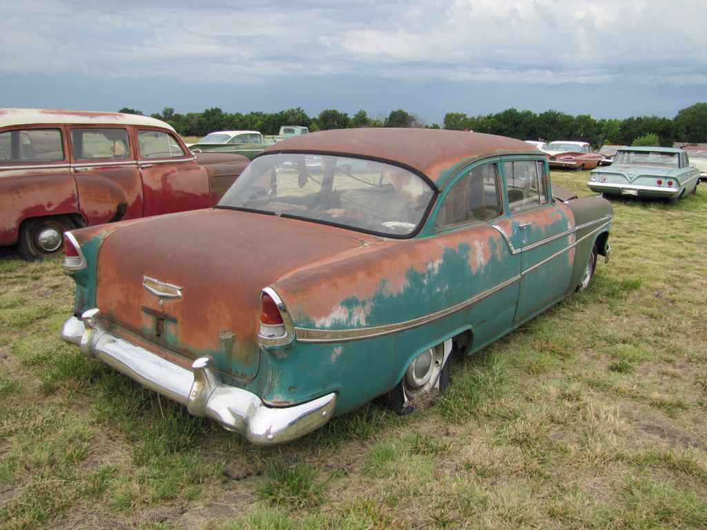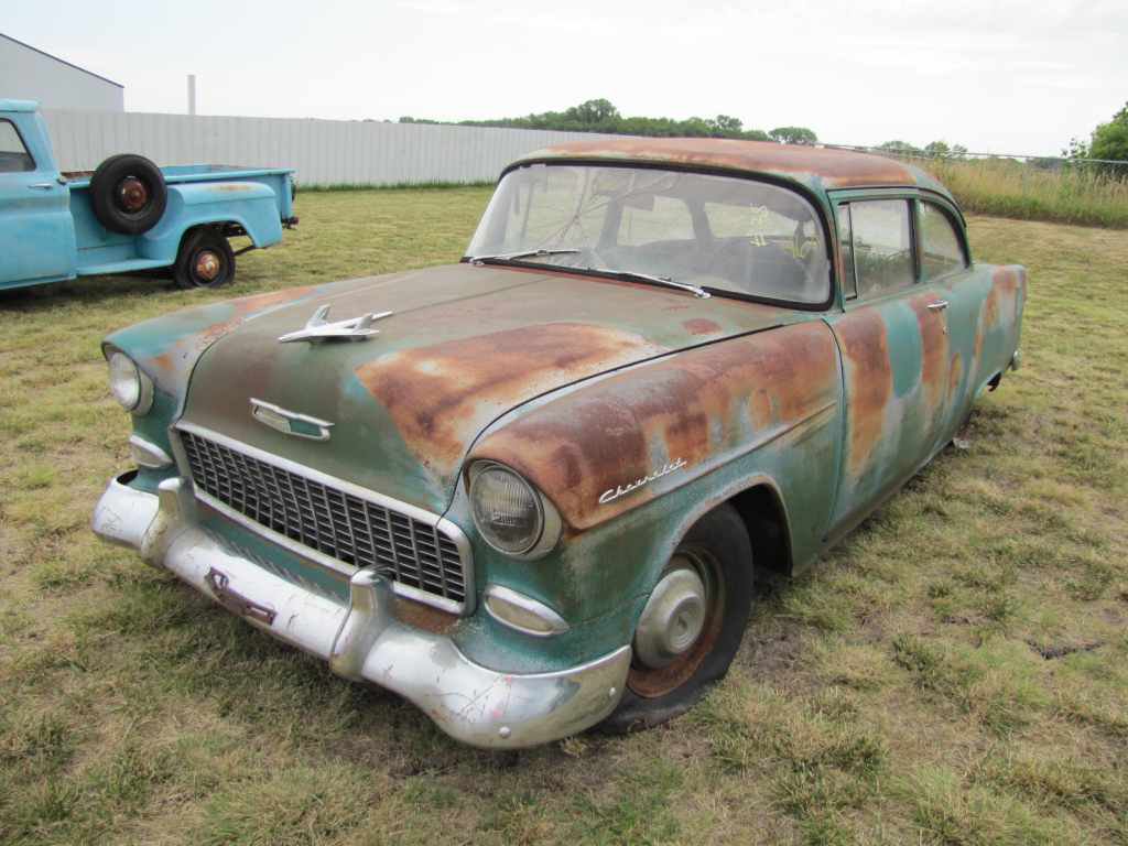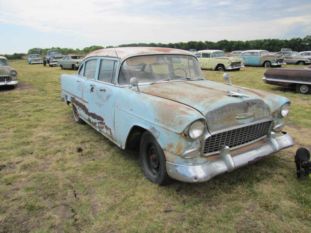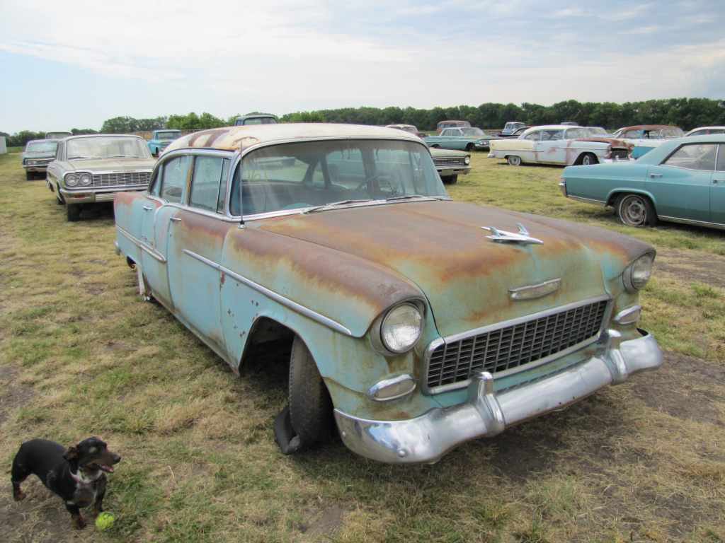 Let’s look at the 1955 Chevrolet’s in detail this time. The 1955 was the beginning of the “tri-five†series from 1955-1957. There were ten Chevrolet cars sold during the two days of the auctions for this model year. The cars come in three variations, the bare bones 150, a slightly sexier 210 and the fully duded out Bel Air. The VIN’s shown by VanDerBrink helped decipher which model was which and with what engine. All these cars were high mileage survivors and presumably trade-ins to Lambrecht Chevrolet. All ten cars are in rough condition and will need some extensive body and mechanical work, or kept in